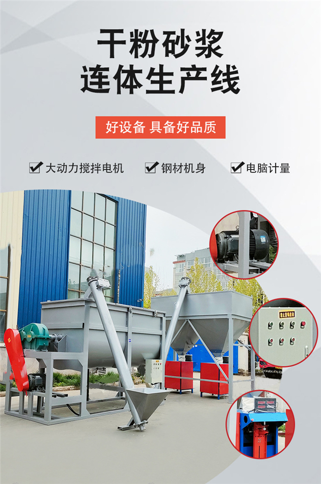 4、操作簡單:該設備無需基礎即可安裝,具有占地面積小、操作簡單、能耗低、產量高等優點??捎糜谏a玻化微珠保溫砂漿、聚苯顆粒保溫砂漿和各種外墻特種保溫砂漿。